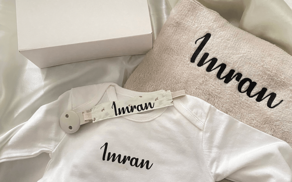 Faites votre choix en ajoutant vos préférences pour chaque article (couleur, police) ainsi que le prénom à personnaliser.
