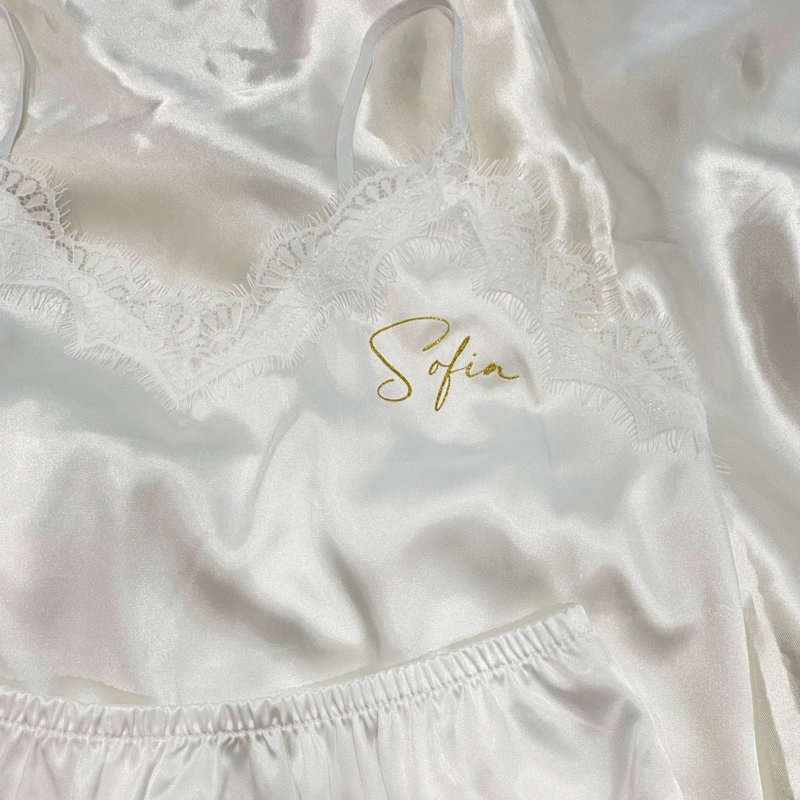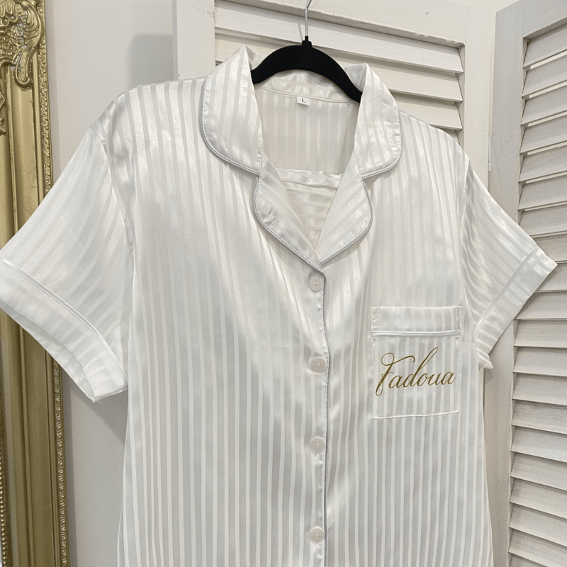 Découvrez le summum du luxe avec nos pyjamas et peignoirs personnalisés. Fabriqués avec une attention minutieuse dans nos ateliers, ces pièces associent confort et élégance. Ajoutez une touche personnelle en personnalisant votre pyjama avec votre prénom ou vos initiales. Offrez-vous le raffinement et la douceur inégalée de nos pyjamas et peignoirs en satin.